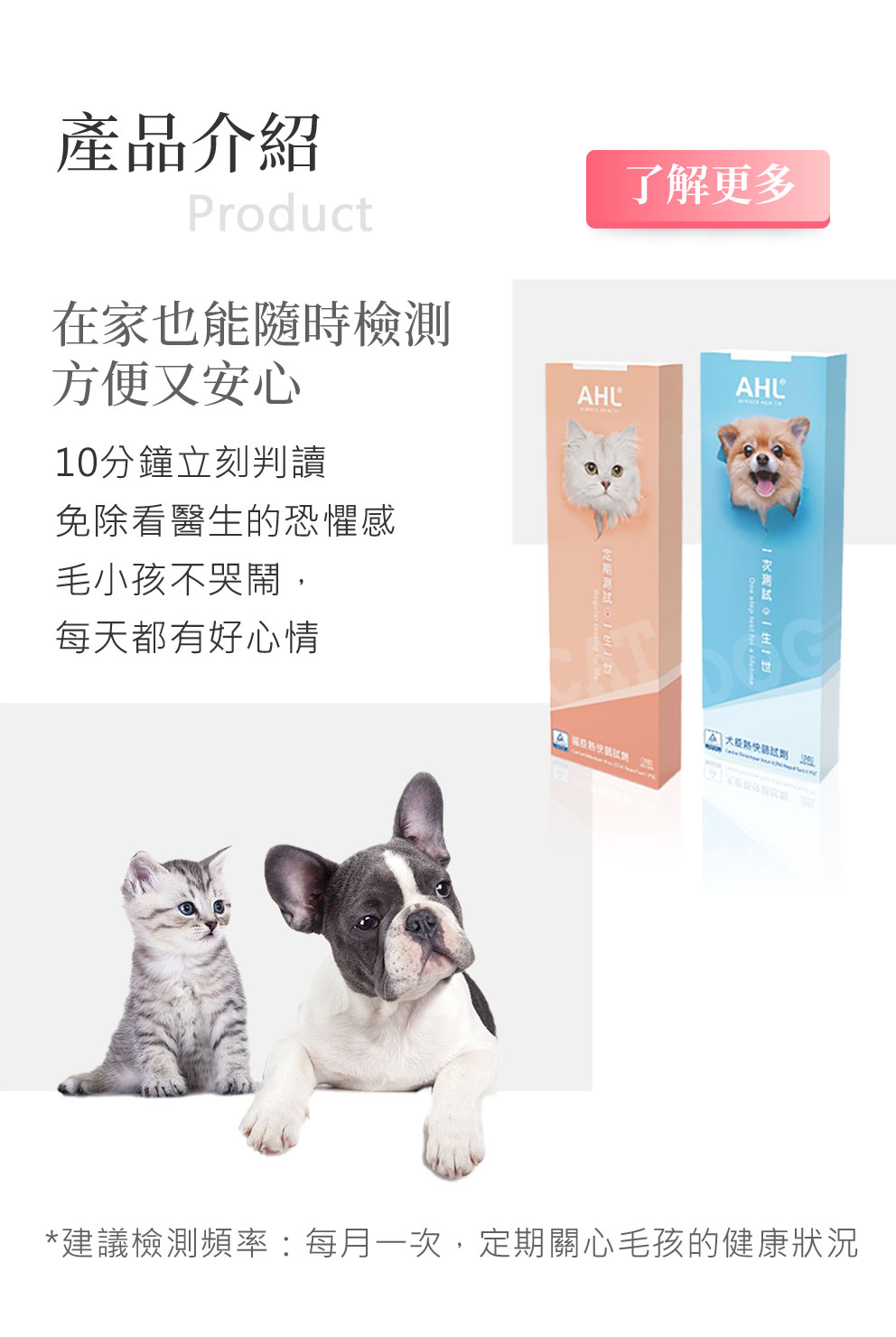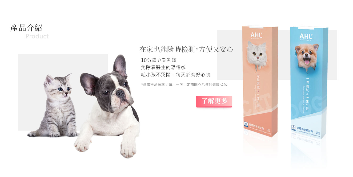 AHL®寵物病毒快篩|LFIA 技術寵物病毒檢測試劑|ISO13485醫材品質體系生產|第三方 PCR 核酸比對研究支持 康立生物科技有限公司 ALWAYS HEALTH 產品介紹 Product 毛孩守護 Guard 聯絡我們 Contact 聯絡我們 Contact US 歡迎聯繫我們 無需等待 立即諮詢